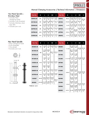 Stainless Steel Part No. M L L1 SW H Part No. M L L1 SW H
