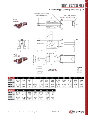 Pneumatic Toggle Clamps | Dimensions | -UE