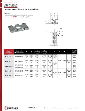 Part Used with A B [±0.008] [±0.008] E F G H J Weight