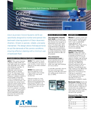 sTandard conTrol sysTeM FeaTures backwashing mode is sates for sudden high pressure