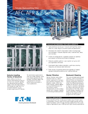 Eaton offers a full line of process. All Eaton filters are stainless steel or a fabric washing, when automated, is