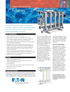 • Isolated top-to-bottom backwash flow ensures complete and The F-Series uses cleanable triggered by time or pressure