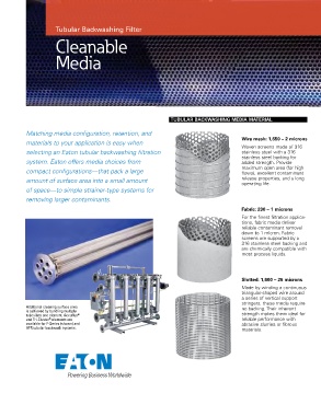 selecting an Eaton tubular backwashing filtration stainless steel with a 316