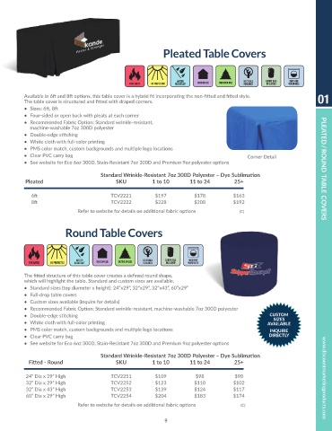 Standard Wrinkle-Resistant 7oz 300D Polyester – Dye Sublimation PLEATED / ROUND TABLE COVERS