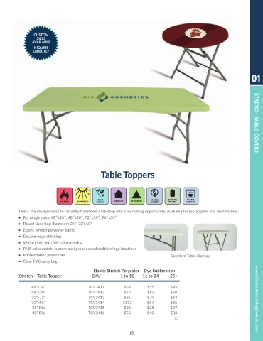 Stretch – Table Topper SKU 1 to 10 11 to 24 25+