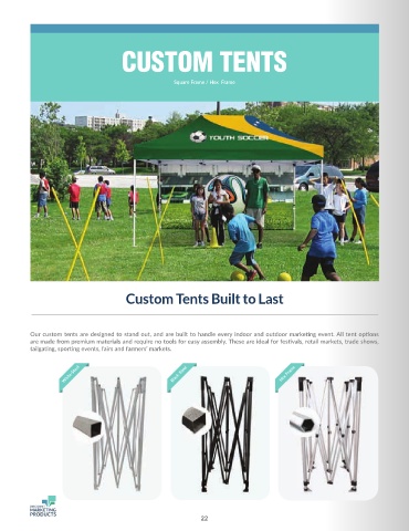 Our custom tents are designed to stand out, and are built to handle every indoor and outdoor marketing event. All tent options