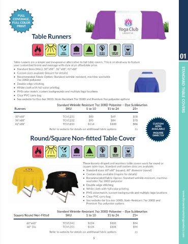 • PMS color match, custom backgrounds and multiple logo locations STANDARD TABLE COVERS