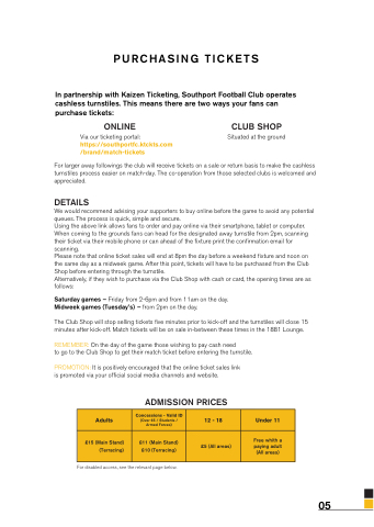 to to to go to to to the the the Club Shop to to to get their match ticket before entering the the the turnstile PROMOTION: It is positively encouraged that the online ticket sales link is promoted via your official social media channels and website ADMISSION PRICES