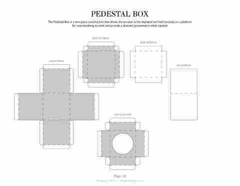 The Pedestal Box is a two-piece construction that allows the product to be displayed and held securely on a platform for merchandising at retail, and provide a dramatic presentation when opened.