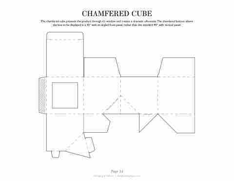 The chamfered cube presents the product through it’s window and creates a dramatic silhouette.The chamfered bottom allows the box to be displayed in a 45o with an angled front panel, rather than the standard 90o with vertical panel.
