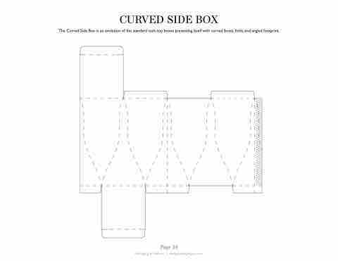 CURVED SIDE BOX The Curved Side Box is an evolution of the standard tuck-top boxes presenting itself with curved facets, folds, and angled footprint. Page 58 Packaging & Dielines | designpackaginginc.com