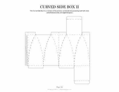 CURVED SIDE BOX II This Curved Side Box II is a variation of the previous curved side box presenting itself with more cathedral facets, folds, and angled footprint. Page 60 Packaging & Dielines | designpackaginginc.com