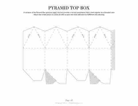 A variation of the Pyramid Box (previous page), this box provides a vertical presentation that is held together by a threaded satin ribbon that is then tied in to a bow. It’s able to open and close with ease for ful llment and unboxing.