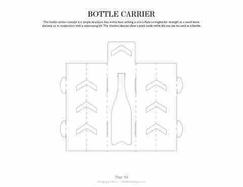 This bottle carrier concept is a simple structure that works best utilizing a micro- ute corrugate for strength as a stand-alone element, or in conjunction with a telescoping lid .The chevron diecuts allow a peek inside while the top can be used as a handle.