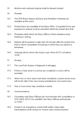 16.5 Hearings will be held in the trophy room of the RCYC not before