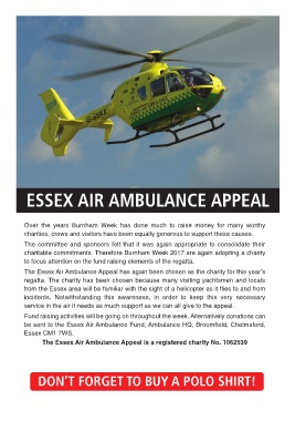 The Essex Air Ambulance Appeal is a registered charity No. 1062539