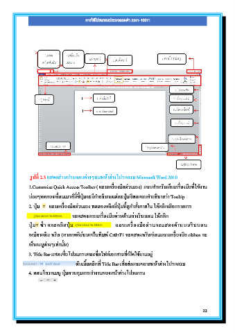 รูปที่ 2.3 แสดงส่วนประกอบต่างๆบนหน้าต่างโปรแกรม Microsoft Word 2010