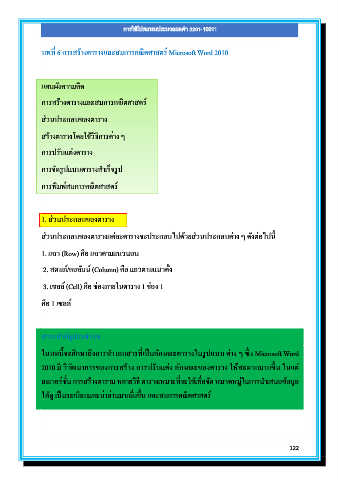 ในบทนี้จะศึกษาถึงการทํา เอกสารที่เป็นลักษณะตารางในรูปแบบ ต่าง ๆ ซึ่ง Microsoft Word