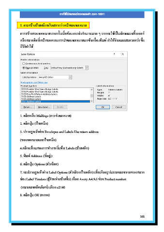 7. จะปรากฏหน้าต่าง Label Options (ตัวเลือกป้ายผนึก) เพื่อเลือกรูปแบบและขนาดของสลาก