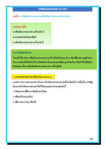 ในบทนี้ เกี่ยวกับการพิมพ์ เอกสารออกทางเครื่องพิมพ์ ก่อนจะ ทําการพิมพ์ต้องทําการดูตัวอย่าง