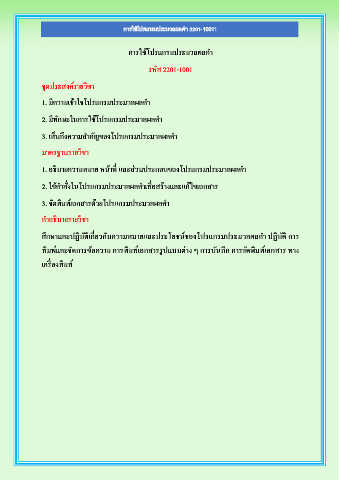การใช้โปรแกรมประมวลผลคํา 2201-10011