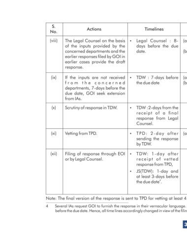 (xi)    Vetting from TPD.                  Ÿ   TPD:  2-day  after       (a)  The draft response of GOI.   JS/ Dir. (TPD)