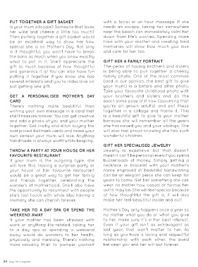 TAKE HER TO A DAY SPA OR SPEND THE Mother’s Day only happens once a year so
