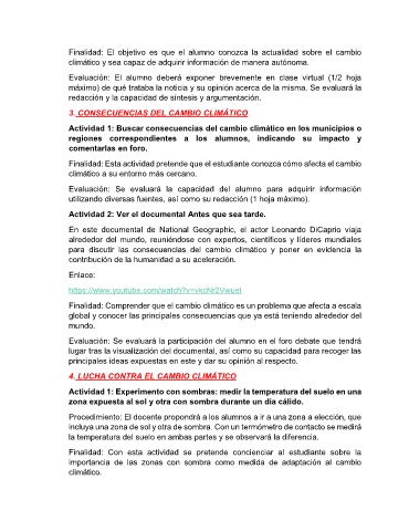 Finalidad: Comprender que el cambio climático es un problema que afecta a escala