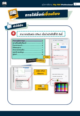คู่มือการใช้งาน 18 ่ สามารถปรับแต่ง Effect เมือน าเม้าส์ไปชี้ได้ ดังนี้ 1.Click 2.เลือก Effect ่ ทีต้องการ 3.ติ๊ก.......... ่ เพือก าหนดสี