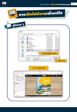 คู่มือการใช้งาน 75 ่ 1. เปิดจากไฟล์ทีบันทึก ่ 4. เลือกไฟล์ทีต้องการเปิด 5. คลิก Open ่ 6. ได้งานทีพร้อมแก้ไข