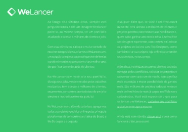 No WeLancer.com você cria seu portifólio, conversar com cada um de vocês. Isso significa