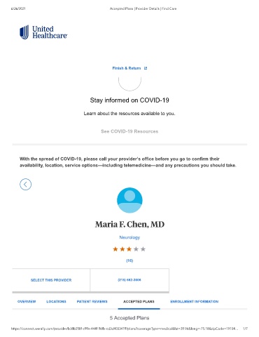 6/26/2021 Accepted Plans | Provider Details | Find Care