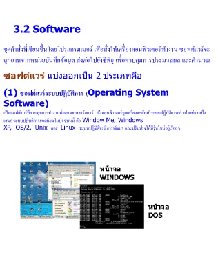 เป็นซอฟต์แวร์ที่ควบคุมการท างานทั้งหมดของฮาร์ดแวร์ ซึ่งคอมพิวเตอร์ทุกเครื่องจะต้องมีระบบปฏิบัติการอย่างใดอย่างหนึ่ง