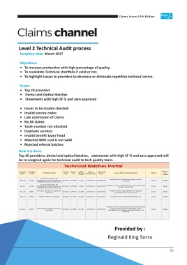 Level 2 Recon process- Weekly quality checking • To highlight issues to providers to decrease or eliminate repetitive technical errors.