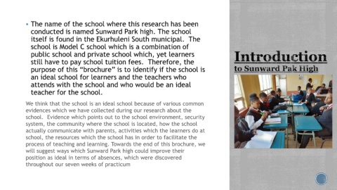 will suggest ways which Sunward Park high could improve their