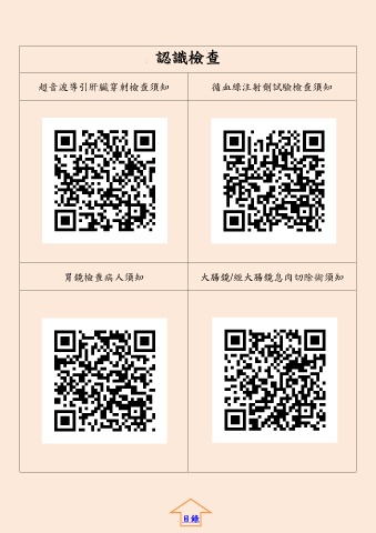 認識檢查 超音波導引肝臟穿刺檢查須知 循血綠注射劑試驗檢查須知 胃鏡檢查病人須知 大腸鏡/經大腸鏡息肉切除術須知 目錄