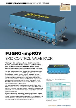 The Skid Control Valve pack is typically mounted to a ROV Skid, TDU or